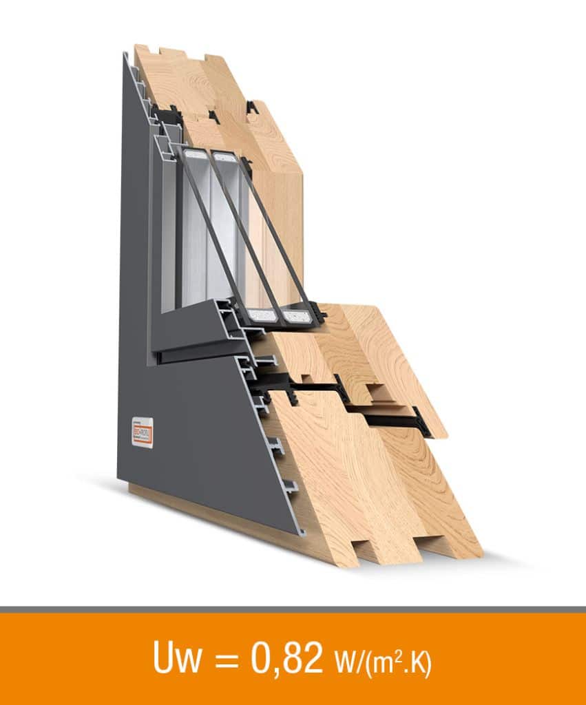 Okná Naturo 80 ALU vyžarujú teplú atmosféru a drevo použité na ich výrobu pochádza z etických zdrojov. Tieto produkty sú vysoko energeticky úsporné, takže ich výberom investori minimalizujú svoju uhlíkovú stopu nielen počas výroby, ale aj počas samotnej prevádzky. Používa sa tu suché zasklenie s technológiou G-FIX, ktorá zabezpečuje správny tlak skla na tesnenie okenného krídla.