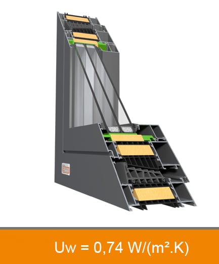 Akustický útlm Rw=44dB – sklo 44,1th Si/16Ar/4/16Ar/8th [Ug=0,6] (52mm), pričom príplatok za takéto sklo voči bežnému 3-sklu predstavuje cca 170€/m2